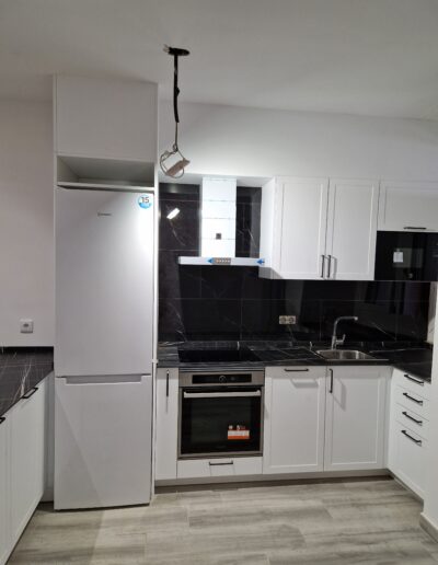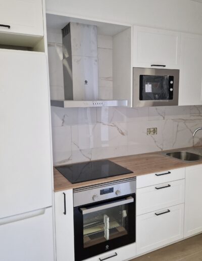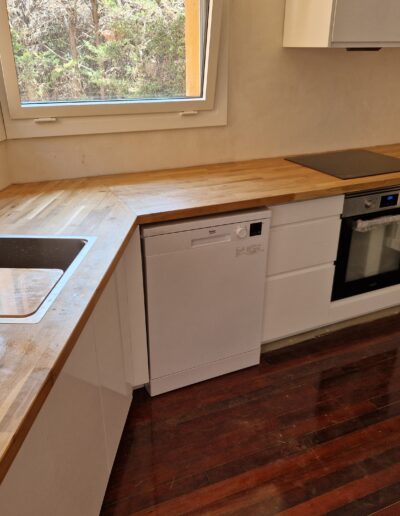 Instalación completa de cocinas, montaje de mobiliario, encimeras y ajustes finales.